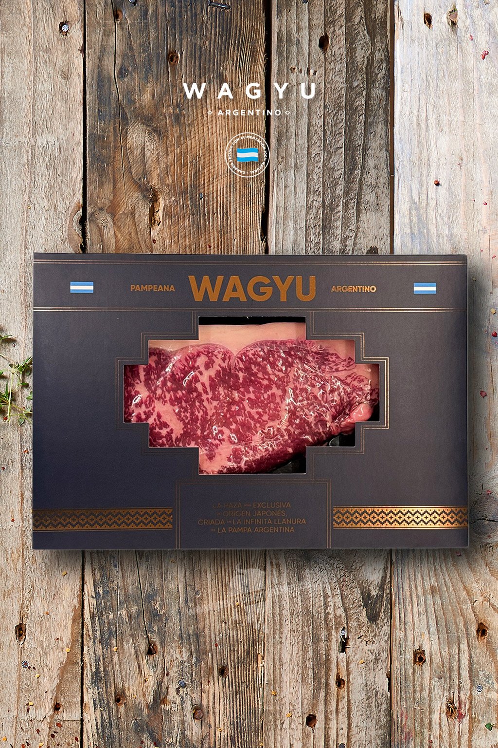 Argentinské Wagyu pochází z vybraných býků - převážně plemene Angus a jeho kříženců – odchovaných na rozlehlých pastvinách. Zde mají zvířata prostor k pohybu a přirozené pastvě, což dodává masu chuť a charakter typický pro argentinské hovězí. Následně je jejich strava doplněna o exkluzivní krmivo, které podtrhuje jemnost, křehkost a plnou chuť masa.
